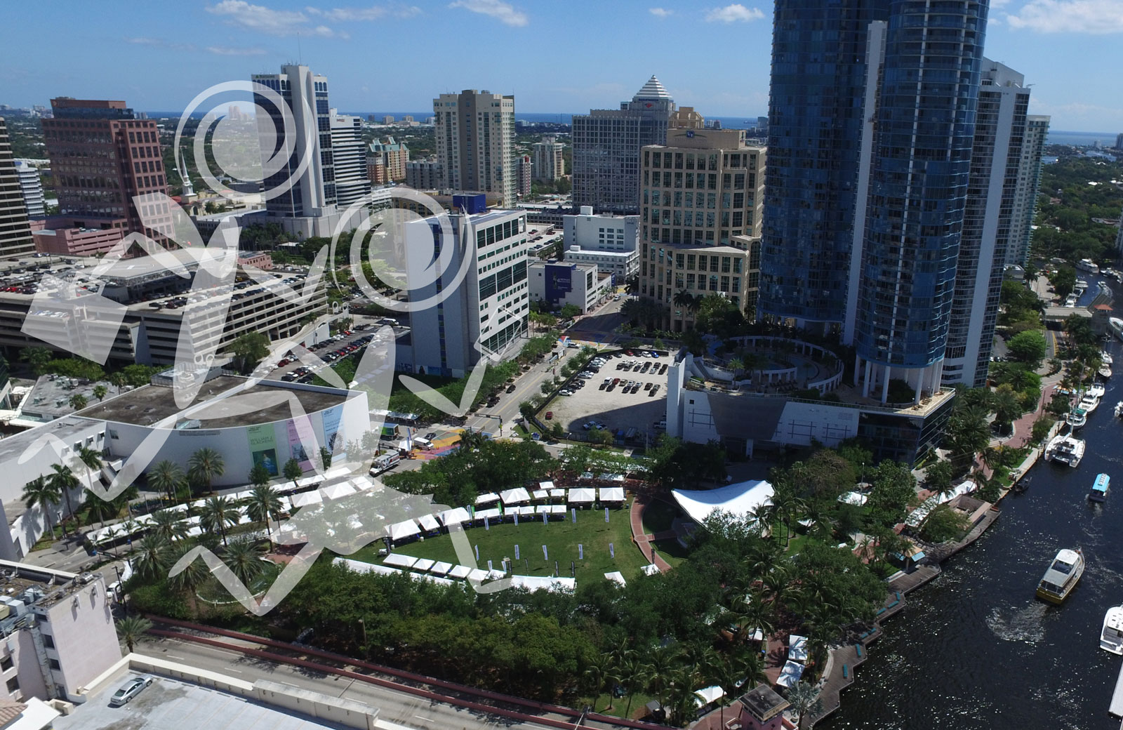 The most convenient place to park is at Elevate One River (formerly One River Plaza). It's the garage adjacent to the Park. It has 350 parking spaces. Park there all night for just $10. Get there by going south on SW 1st Ave/Brickell Ave from Broward Blvd or SW 2nd St. Follow the curve left in the road making a right into the alley at the Public Parking Sign.